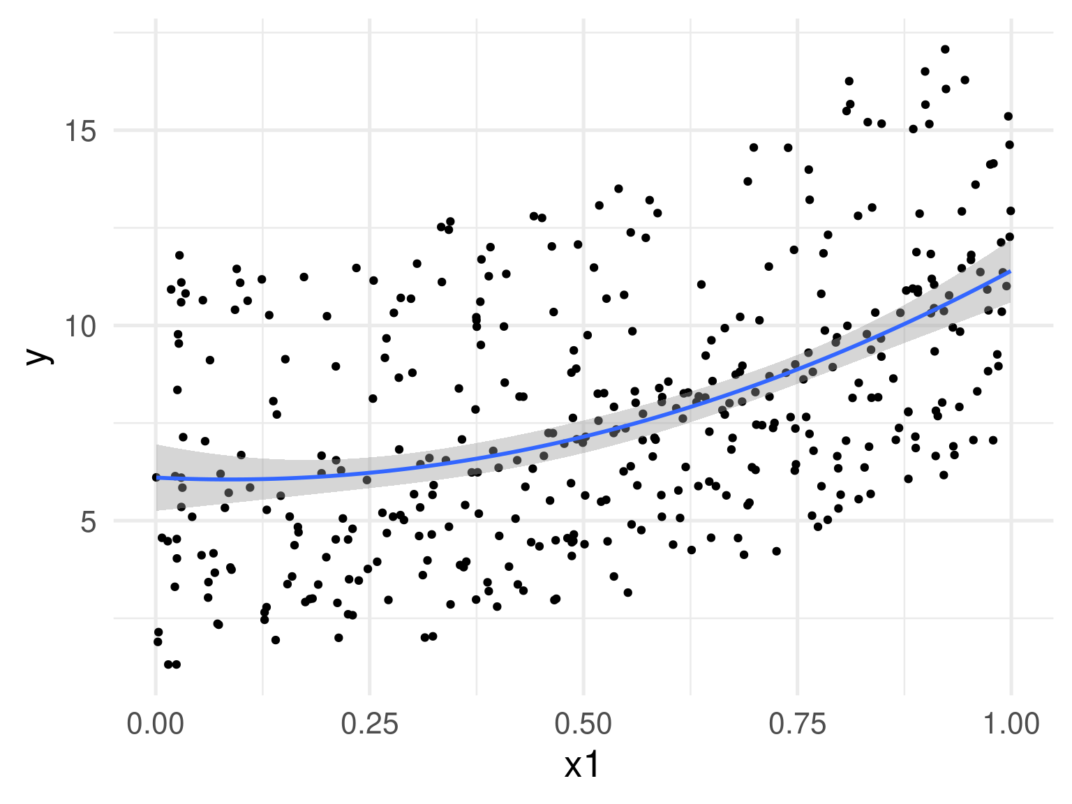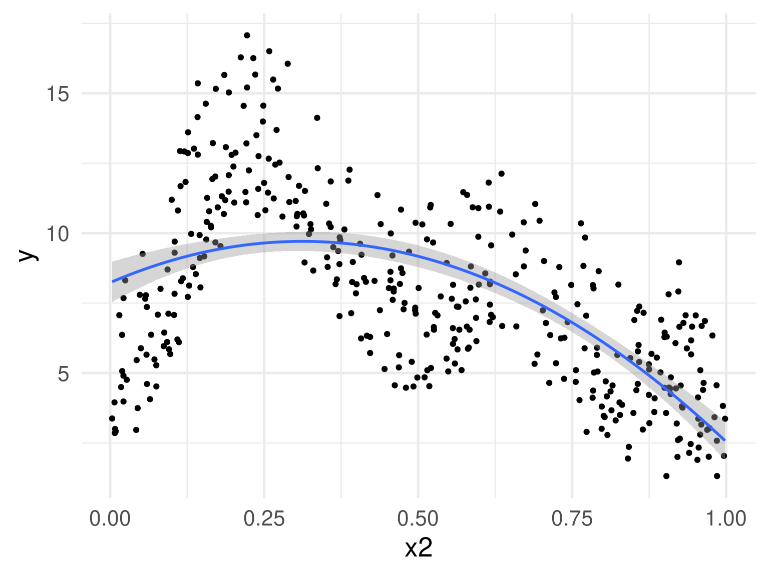 \[ \mathbb{E}(Y_i) = g^{-1}\left[\beta_0 + \sum_j s_j(x_{ij})\right] \]